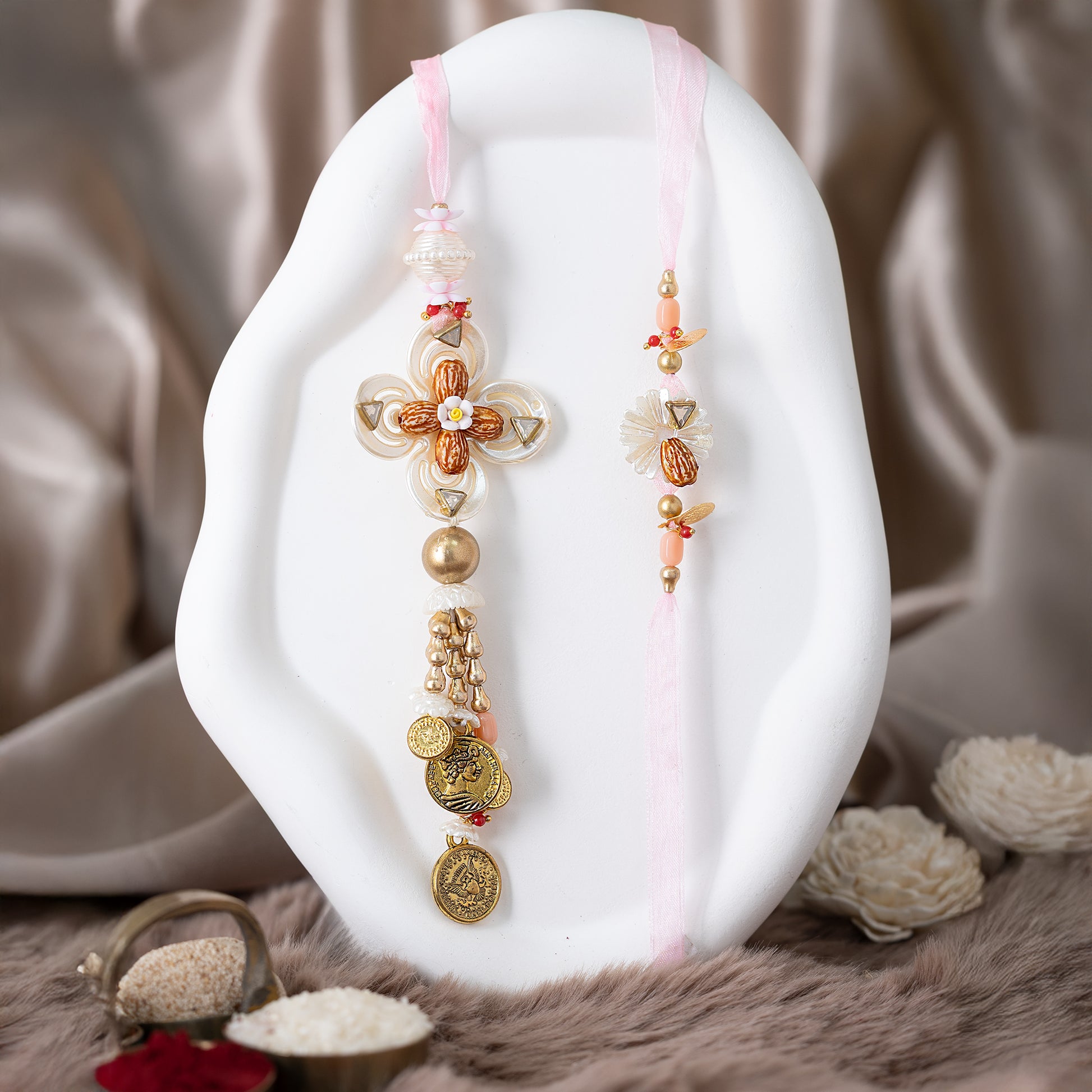 Blushed Almond Bhai Rakhi With Roli Chawal Set