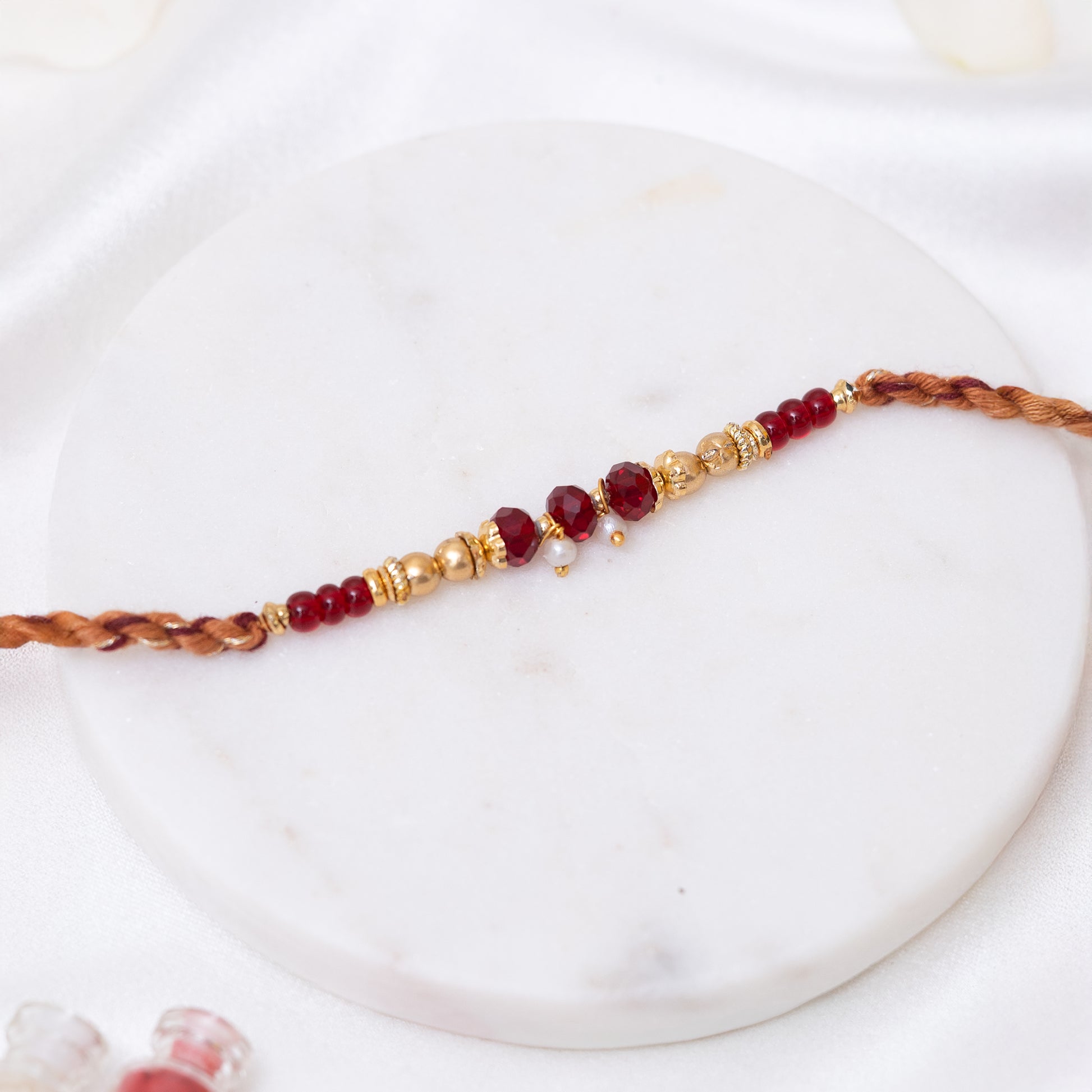 Set of 2 Red Beaded Rakhi With Roli Chawal Set